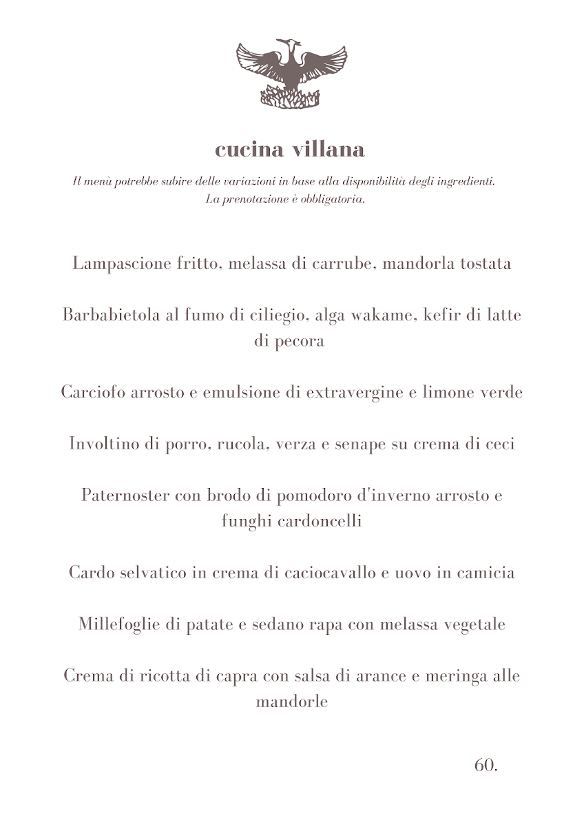 Cucina Villana - Cucina Etnobotanica offers a thoughtfully curated menu that reflects a deep respect for local ingredients and traditional Apulian flavors, elevated through a creative, botanical lens. Each dish feels intentional, blending rustic authenticity with refined presentation, and highlighting seasonal produce in a way that is both comforting and innovative. Among the standout offerings, the Ceci Rossi Serviti Su Crema Di Zucca Ed Elicriso perfectly encapsulates the restaurant’s philosophy-earthy red chickpeas paired with a velvety pumpkin cream and aromatic helichrysum create a harmonious balance of texture and fragrance. The menu as a whole demonstrates a commitment to sustainability and terroir, with flavors that are rich yet never overwhelming, making for a dining experience that is both memorable and deeply connected to the land.